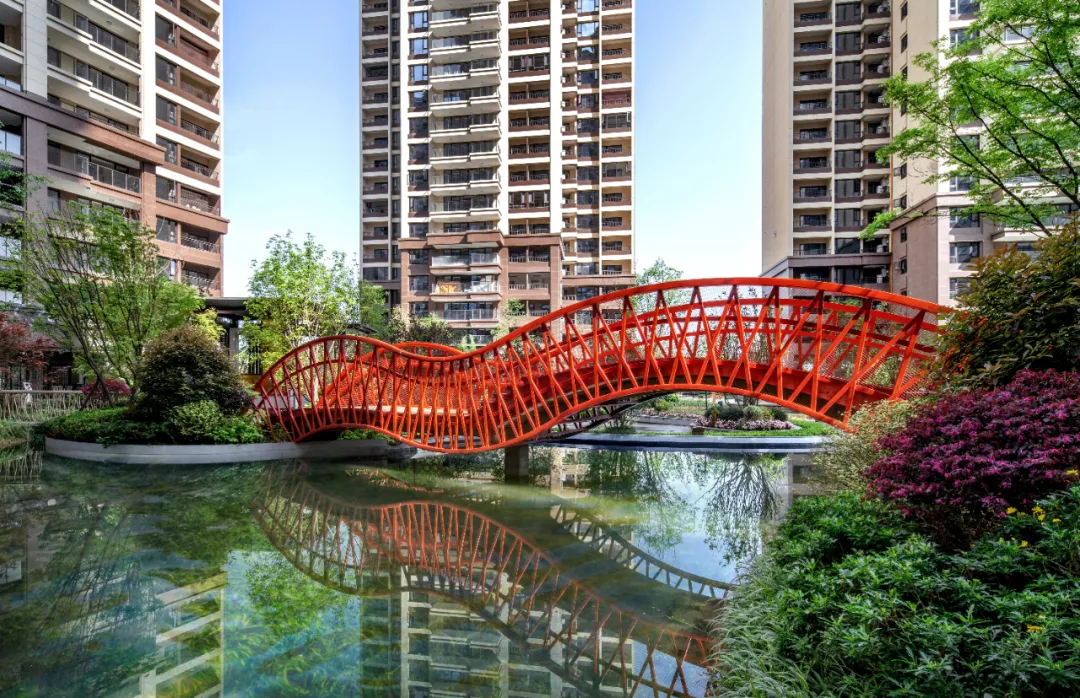 橫跨水面之上,園內多元化的景觀橋喚醒人們對成都古橋的記憶。色彩鮮麗的橋面開啟前往彼得潘島的夢幻之旅,在這裡,人們可以做永遠長不大的孩子,遨遊在充滿狂想和孩子氣勇敢的世界里。